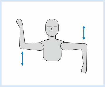 Arme überkreuzen: Gestreckte Arme von Rechts nach Links schwingen, so dass sie sich abwechselnd überkreuzen (15 - 30 Sek.)